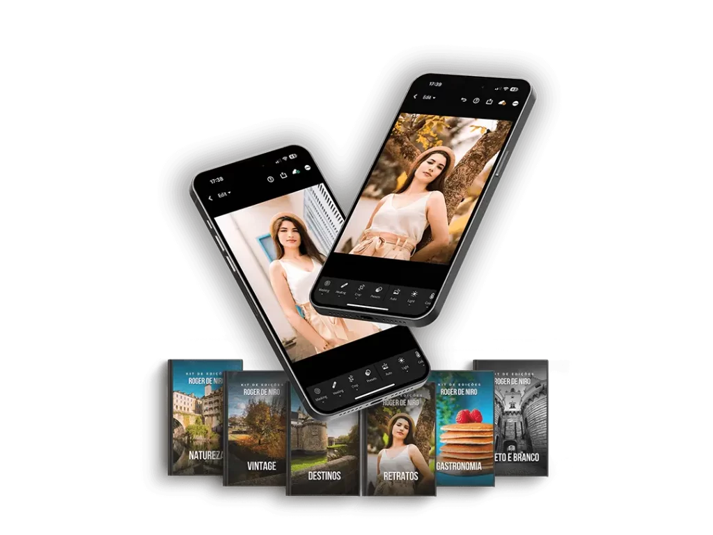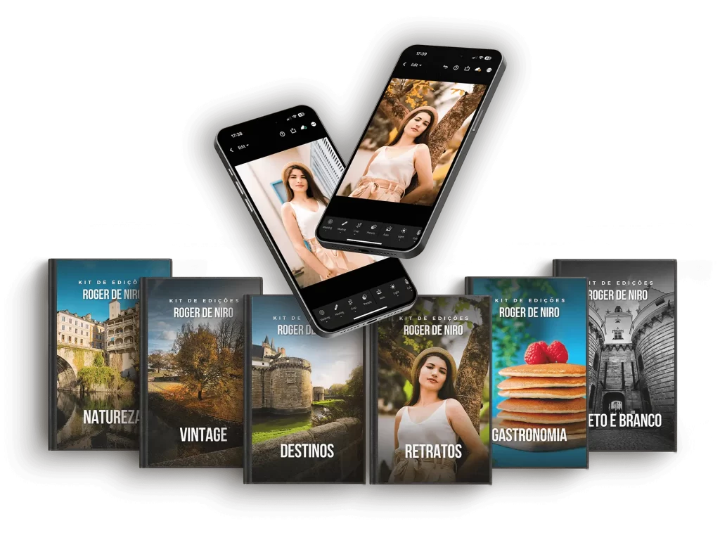 O “Kit de edições de 1 clique” foi feito para que qualquer um possa editar suas fotos de maneira profissional usando apenas um smartphone. Nenhuma experiência com fotografia é necessária para aplicar as edições. Basta seguir o passo a passo para instalar os presets e aplicar as edições quantas vezes desejar.